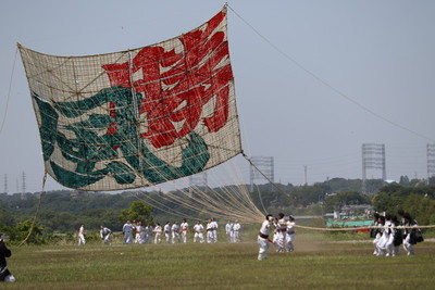 | 日本一! 大きさ14.5m四方、重さ950kgの8間凧(はちけんだこ)が空に舞う! 相模の大凧・新戸大凧保存会公式サイトへ、ようこそ! |